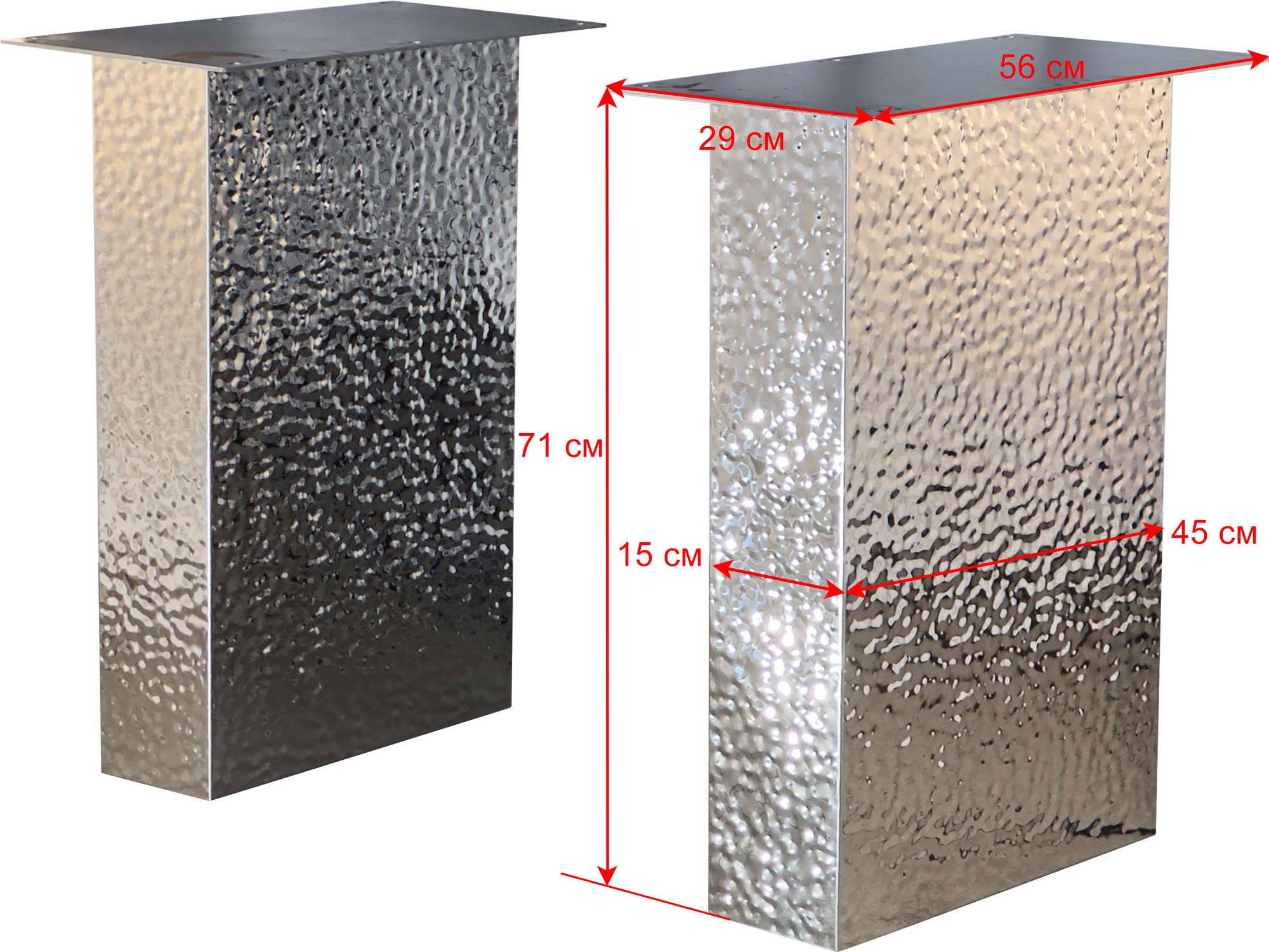 Подстолье из нержавеющей стали 2134EM Глубина: 15 см Длина: 45 см Высота: 72 см Все размеры указаны для одной позиции. В упаковке две штуки. Возможные варианты цвета: 2134EM - лаковое покрытие, цвет "серебро" 2135 ЕМ - лаковое покрытие, цвет - "под золото" (нитрид титана) Рекомендуемый размер столешницы: 2000х1000 Заказать подстолье для своего проекта в городе Курске, вы можете связавшись с нами любым удобным для вас способом - по телефону, по электронной почте или заполнив форму обратной связи на нашем сайте.